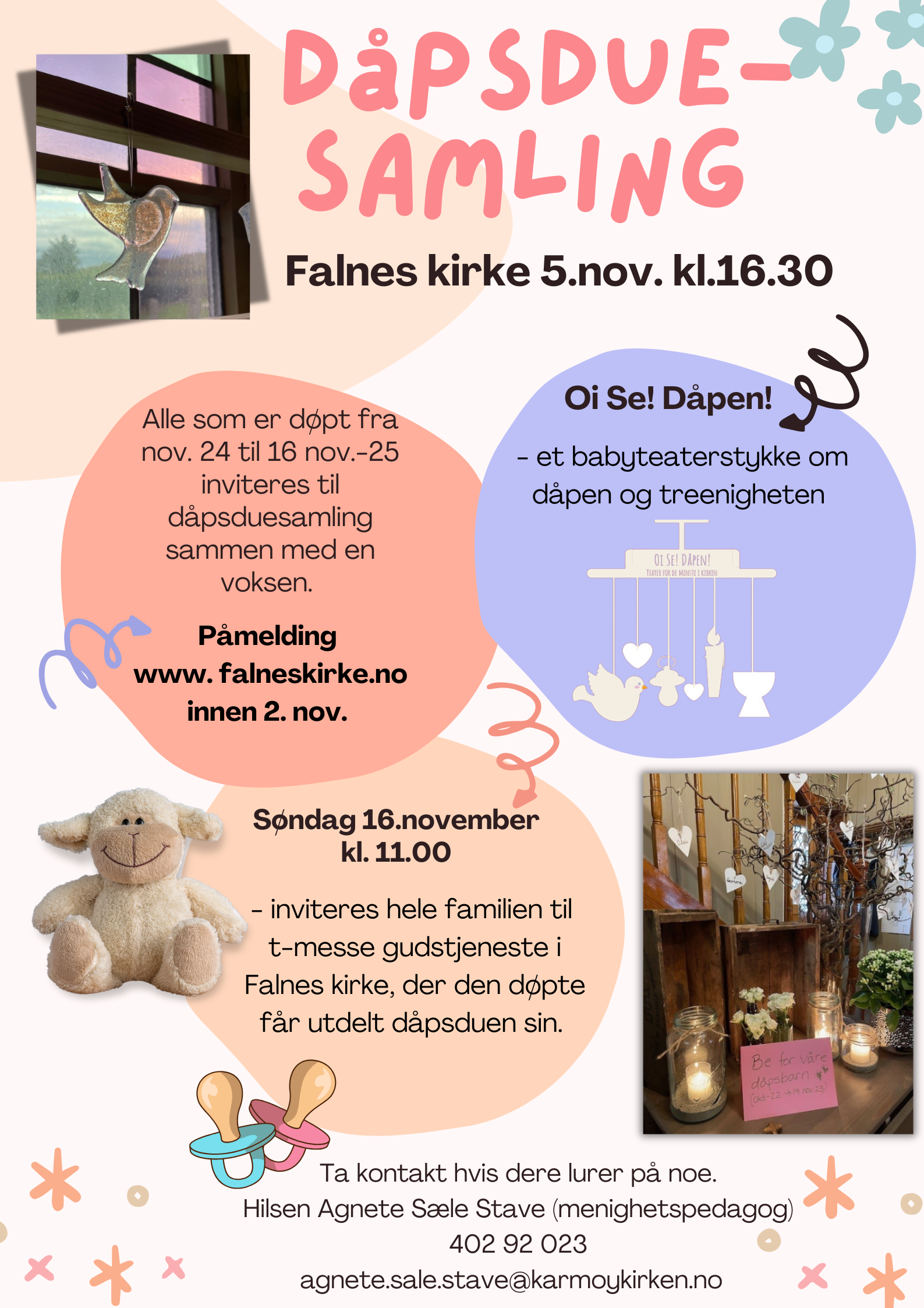 Dåpsduesamling i Falnes kirke 5. nov kl.16.30